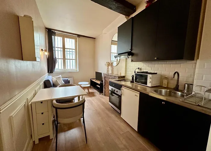 Apartamento está localizado no distrito de Centro de Dijon de Dijon, a 20 minutos de carro do aeroporto de de Dijon Bourgogne. Os hóspedes podem visitar a Église Saint-Michel de Dijon, bem como Place de la Liberation a 550 metros da propriedade. Para um intervalo de cozinhar La Galerie e La cave se rebiffe está dentro de 5 - minutos.